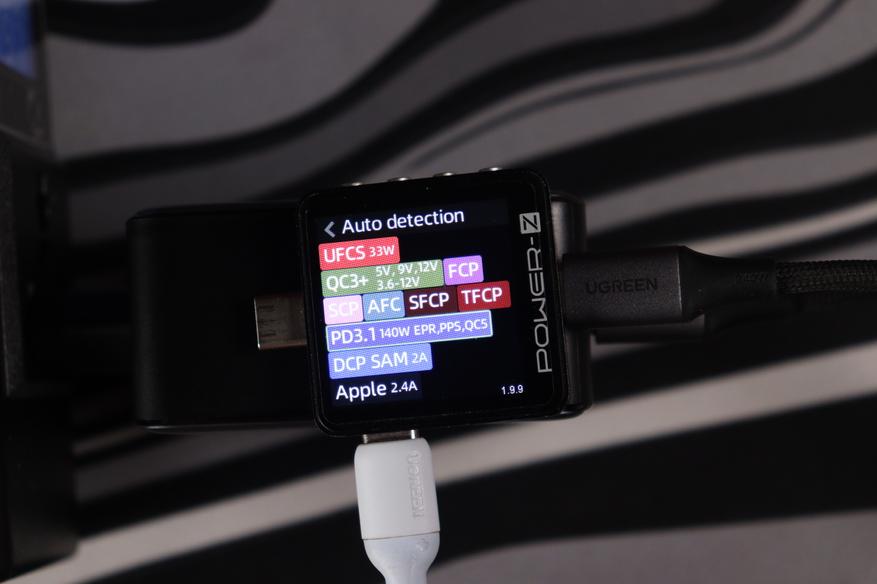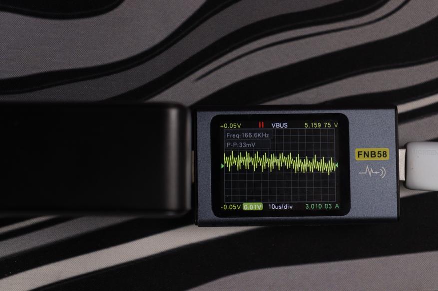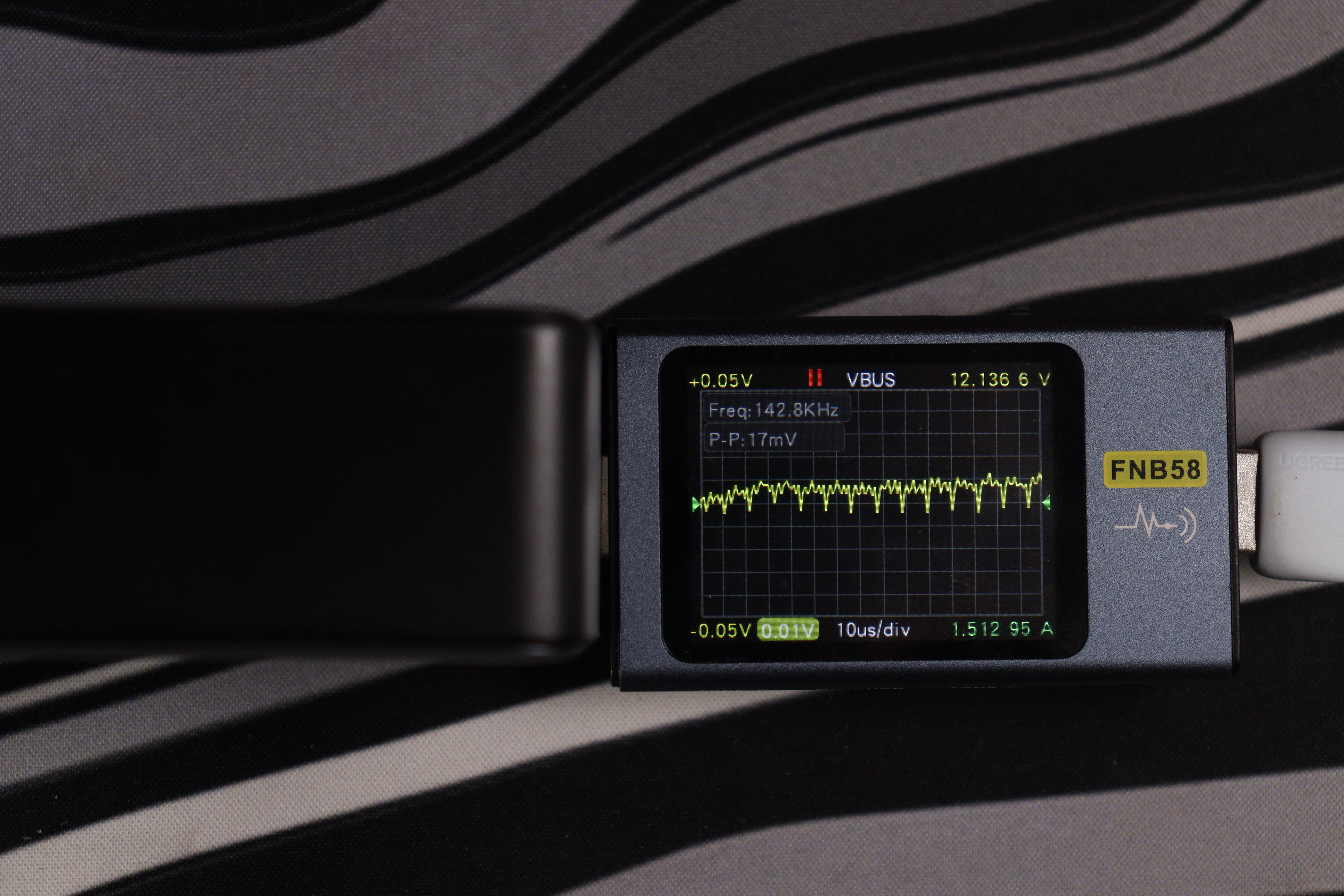 Результаты тестирования впечатляют: низкие пульсации (от 12 до 33 мВ в зависимости от профиля), стабильное напряжение и ток на всех режимах, адекватный нагрев в пределах 58°C даже при получасовой работе на максимальной нагрузке. Устройство поддерживает все современные протоколы быстрой зарядки, включая PD 3.1 с EPR, что делает его универсальным решением для техники Apple, Samsung, Xiaomi, ноутбуков на USB-C и других гаджетов. Особенно порадовала независимость портов — можно заряжать ноутбук на 100 Вт и одновременно подпитывать смартфон и планшет через остальные разъёмы.