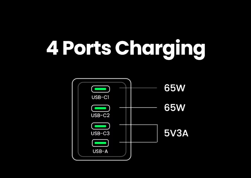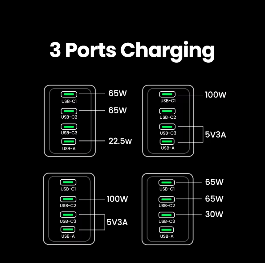 Устройство спроектировано таким образом, чтобы обеспечить стабильное и бесперебойное питание, даже при одновременном подключении нескольких гаджетов. Распределение общей мощности гибко настраивается между портами, что позволяет устройству динамически управлять нагрузкой. Ключевой особенностью является наличие независимых преобразователей (или контроллеров) для каждого порта, что полностью исключает проблему прерывания зарядки (так называемые «перезагрузки») при подключении или отключении новых устройств. Это означает, что при подключении нового устройства зарядка уже подключенного ноутбука или телефона не остановится и не начнется заново.