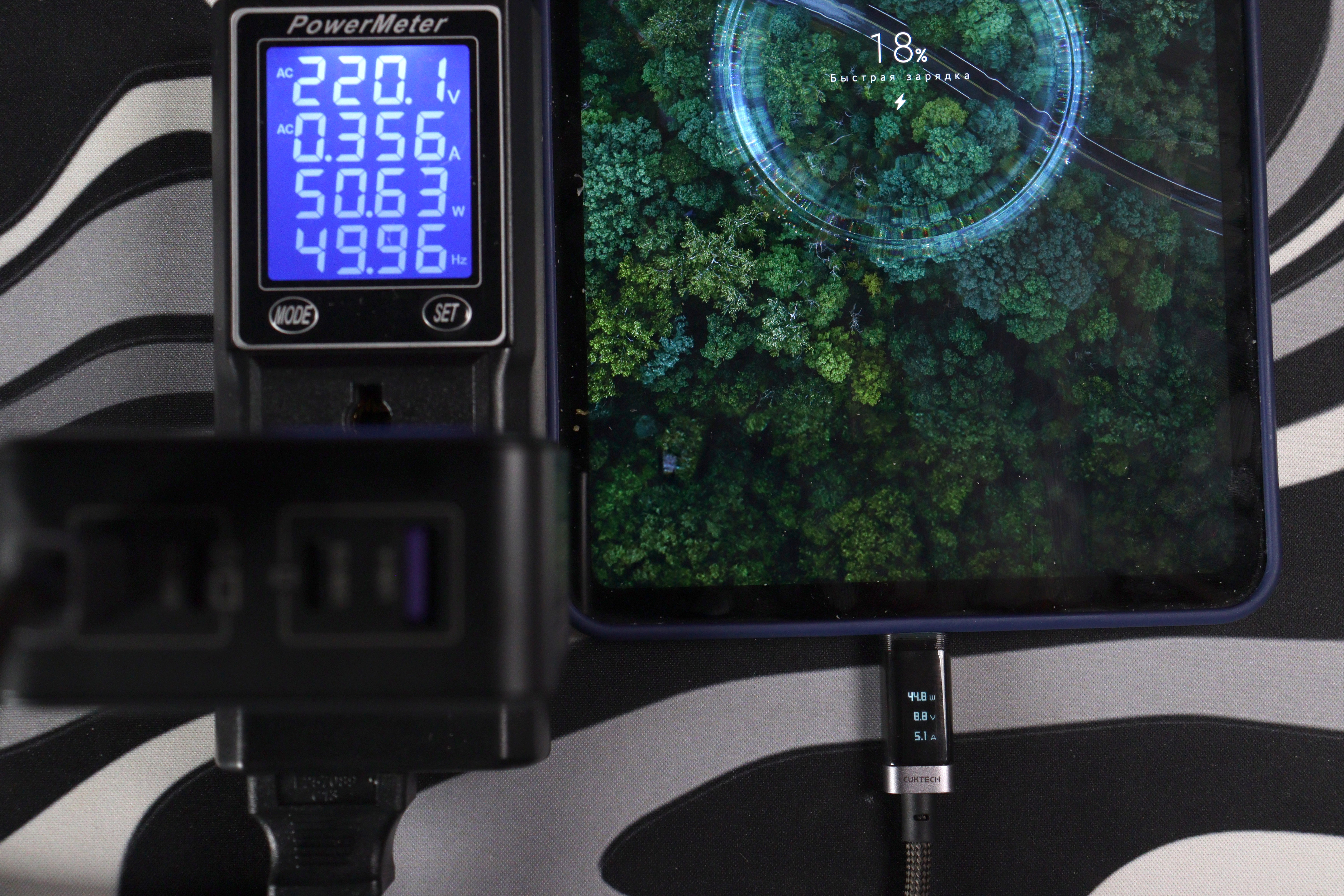 При реальном использовании же с устройствами — проблем никаких не обнаружено. Xiaomi Pad Mini заряжается на своих максимальных 45Вт через кабель Cuktech No.6.