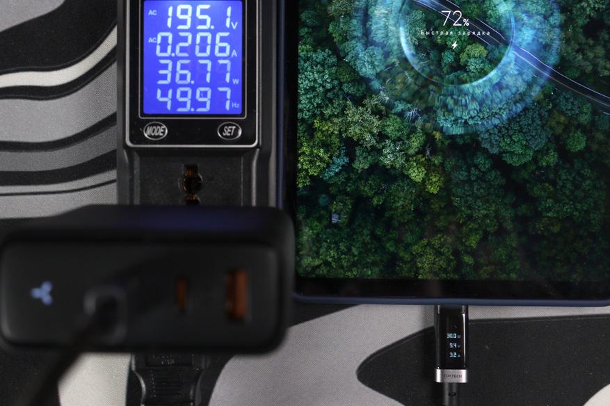 При практическом использовании с различными гаджетами никаких неполадок не возникло. Планшет Xiaomi Pad Mini принимает свою мощность зарядки в 30 Вт через кабель Cuktech No.6, при потенциально возможных 45.