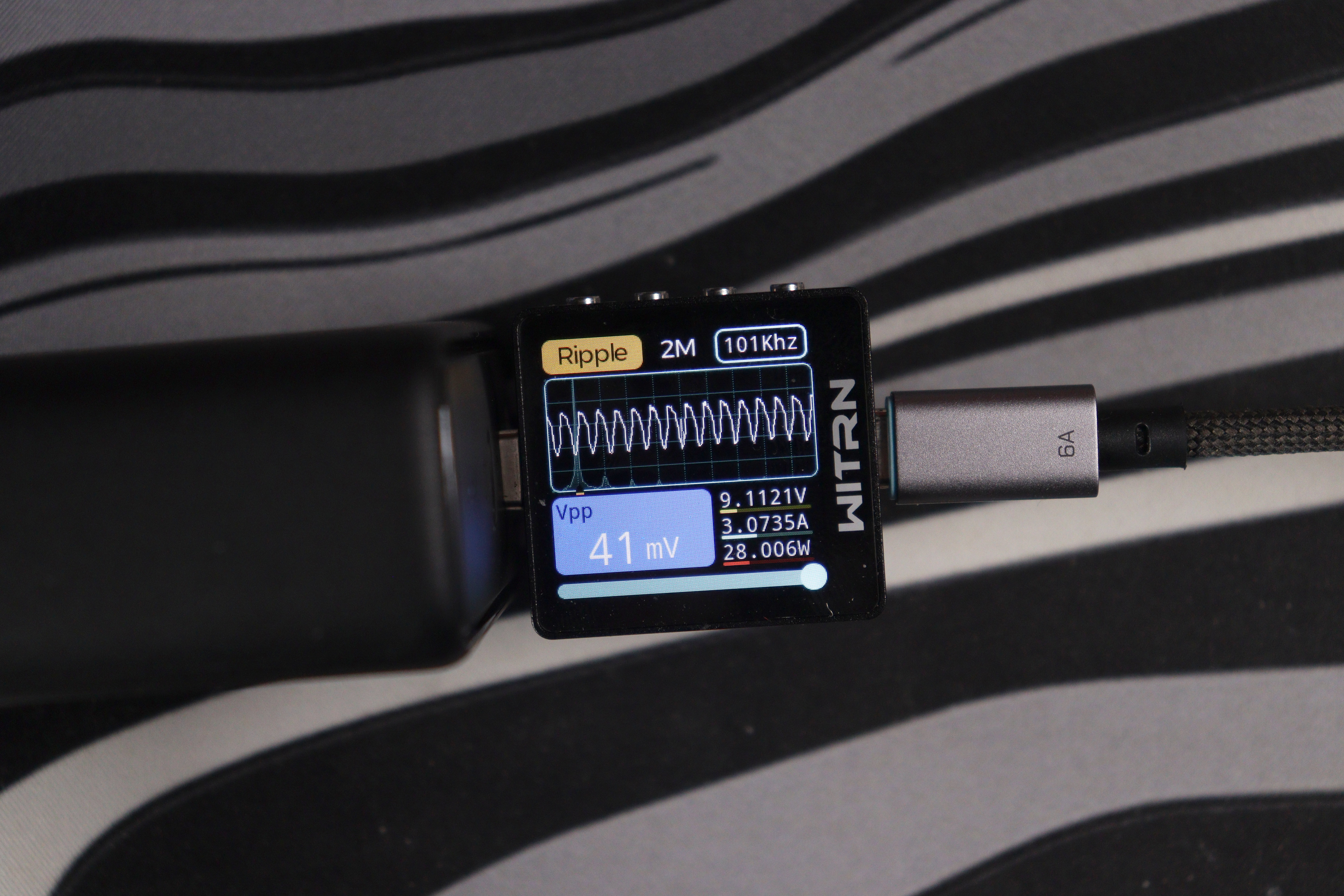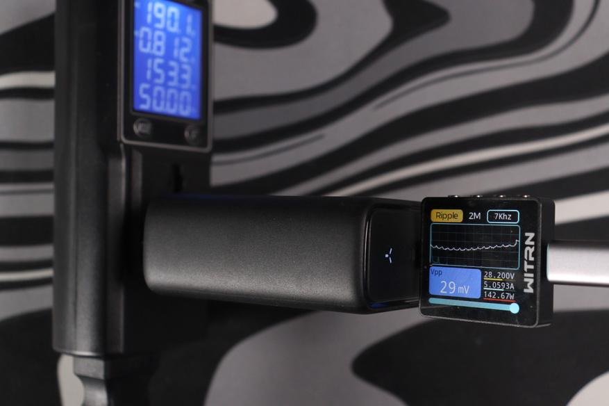 И вот самое неожиданное — в режиме EPR 28V/5A при реальной мощности 142.7W пульсации падают до 29 mV. Это наименьшее значение из всей линейки. Обычно на максимальной нагрузке пульсации растут, а не падают — здесь VOLTME явно уделил особое внимание фильтрации именно в «флагманском» режиме. Диапазон 120-126 mV на средних напряжениях — норма для зарядника такого класса, хотя и не рекорд.
