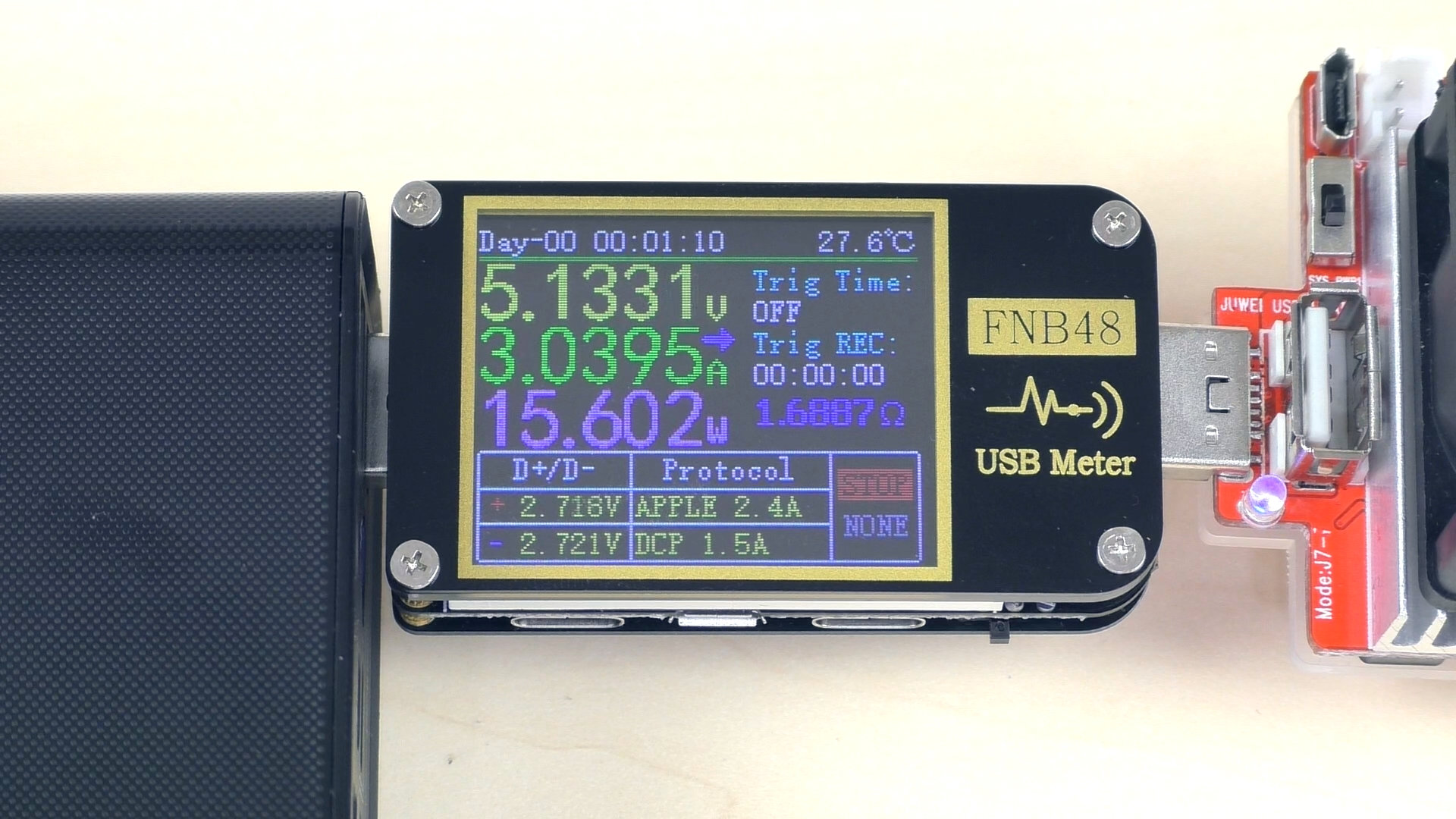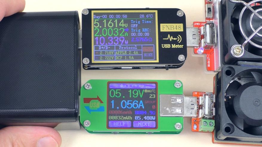 Тест проводился при средних значениях параметров: 12 В и 1,5 А. Такой режим выбран не случайно — у повербанка есть один нюанс.