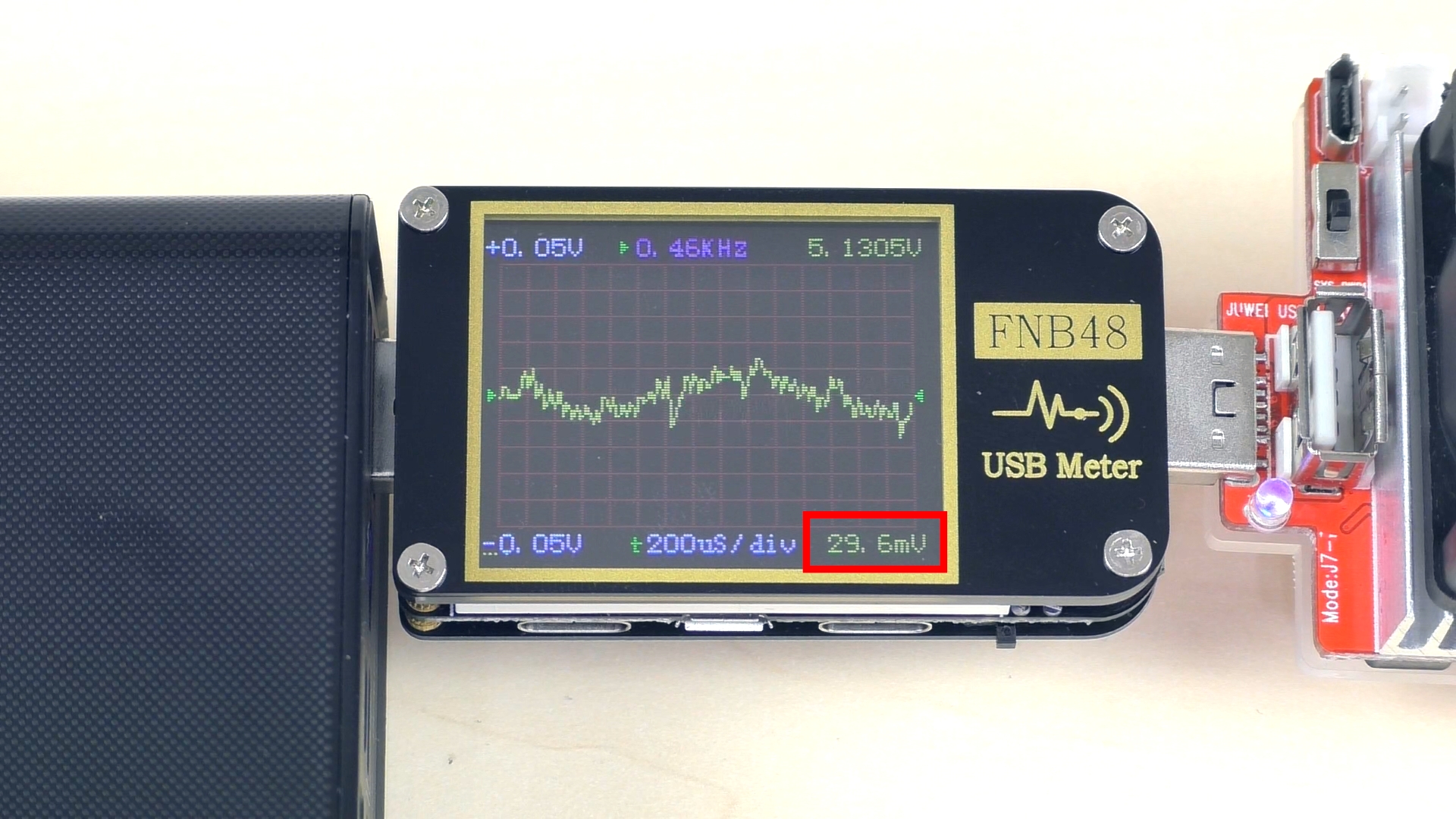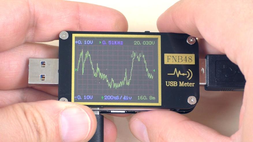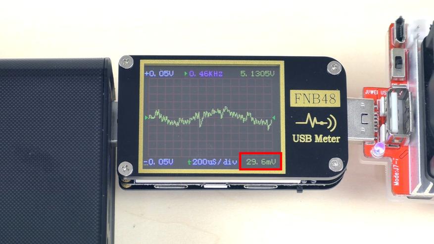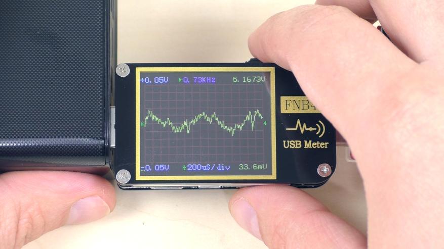В результате порт без труда выдал заявленные 15 Вт. Защита срабатывает при достижении тока в 3,5 А. Пульсации при максимальных 3 А составляют всего около 30 мВ (это примерно 0,6%), то есть менее 1% при норме от 2% до 5%. Чем меньше пульсации, тем лучше.