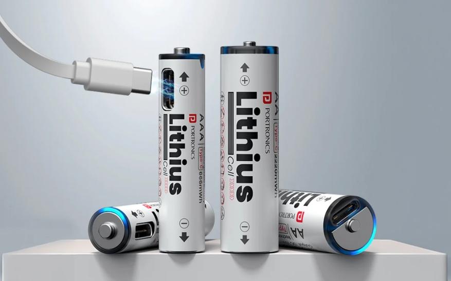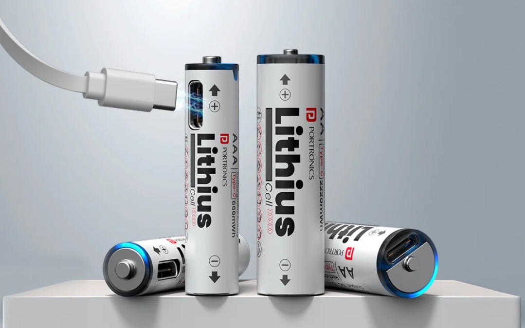 Индийская компания Portronics, специализирующаяся на гаджетах и аксессуарах, выпустила литий-ионные аккумуляторы под названием Lithius Cell, которые можно заряжать через встроенный разъём USB-C. Батареи доступны в размерах AAA и AA.