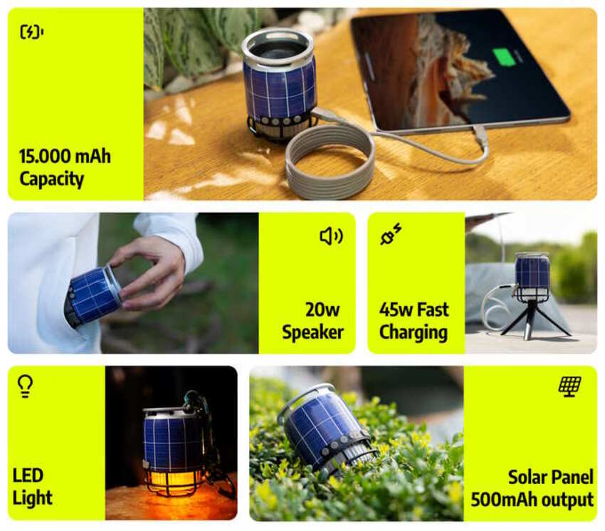 Представлен внешний аккумулятор с солнечной зарядкой, лампой и функцией Bluetooth-динамика