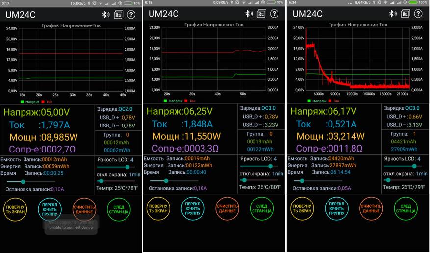 После подключения есть возможность управления USB тестером удаленно, запись параметров, контроль заряжаемого устройства.