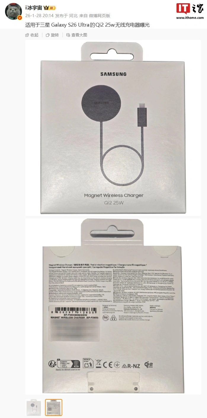 Samsung выпустила магнитное зарядное устройство Qi2 мощностью 25 Вт для Galaxy S26 Ultra
