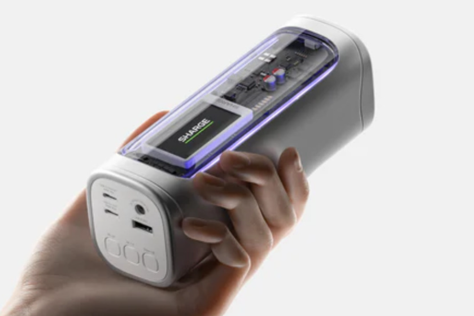 Компания Sharge готовит к выпуску новое портативное зарядное устройство Shargeek 300. Новинка пополнит линейку внешних аккумуляторов бренда и ориентирована на питание не только мобильных гаджетов, но и более требовательной техники. Устройство уже демонстрировалось публике и выполнено в узнаваемом для серии стиле: металлический корпус с полупрозрачной панелью и декоративной RGB-подсветкой.