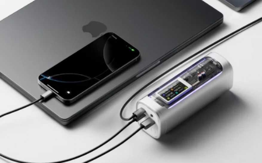 Емкость встроенного аккумулятора составляет 24 000 мА·ч. При этом сам аккумулятор поддерживает ускоренную зарядку: входная мощность достигает 140 Вт, что сокращает время полного восстановления заряда. Отдельное внимание уделено визуальной части и информативности. Корпус выполнен из алюминиевого сплава с серо-серебристой отделкой. Через прозрачную часть корпуса виден цветной дисплей, который отображает основные параметры работы устройства в реальном времени, включая входную и выходную мощность, температуру и остаток заряда. Дополняет оформление встроенная светодиодная RGB-лента.