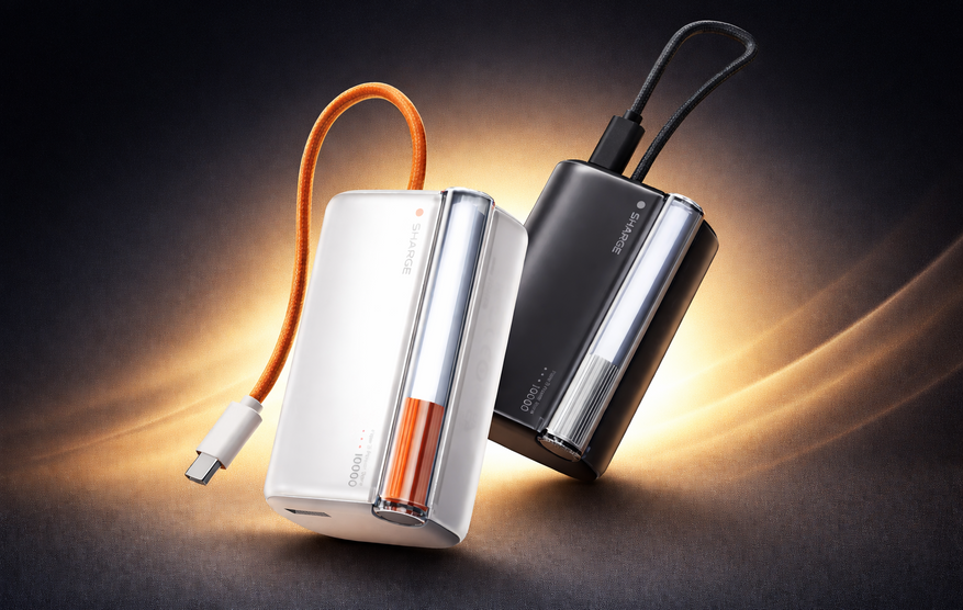Sharge Flow 3: мини-повербанк на 10 000 мАч с 45-ваттной зарядкой, встроенным кабелем и тремя портами поступил в продажу