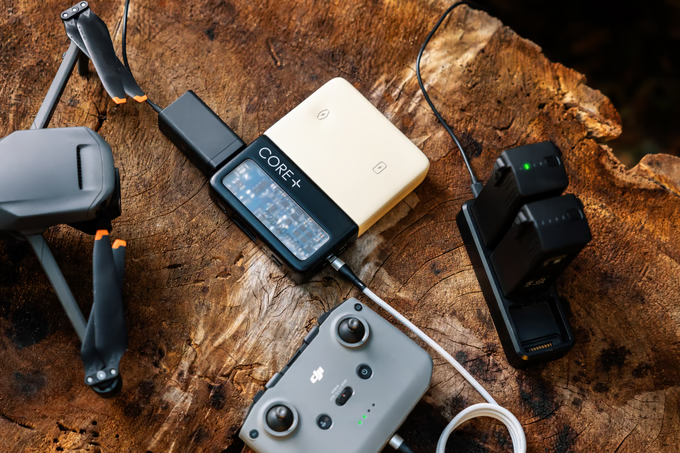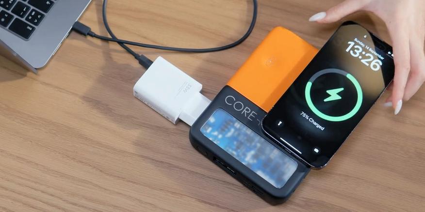 Внешний аккумулятор стал постоянным спутником при использовании электронных гаджетов без доступа к розетке. Американский стартап представил универсальный повербанк с возможностью смены аккумуляторных блоков (проприетарных) и с инвертором для розетки 110/220 В на 200 Вт. Так же в модели CorePlus имеется выход с суммарной мощностью 140 Вт и беспроводная зарядка (15 Вт) на два устройства. Модель выпускается с батареями 22000 и 27000 мАч.