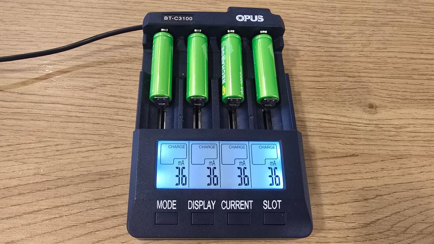Финальная стадия процесса зарядки проходила с током около 36 мА. Это так называемый этап дозарядки, который предназначен для аккуратного завершения зарядного цикла без риска перегрева и перезаряда. Присутствие этого режима говорит о корректной работе зарядного устройства и совместимости аккумуляторов с современными методами зарядки.