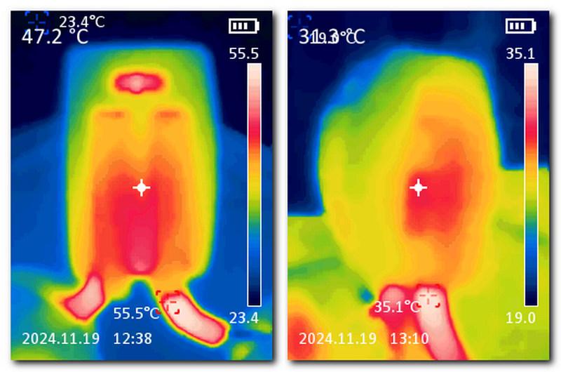 Производитель указывает максимальный ток 32А (точно такой же, как у Wago). Я пропустил ток 32А через коннекторы в течение получаса. Трёхконтактный нагрелся очень незначительно — всего до 31 градуса. Двухконтактный (был взят экземпляр с самым большим сопротивлением) ожидаемо нагрелся сильнее — до 47 градусов.