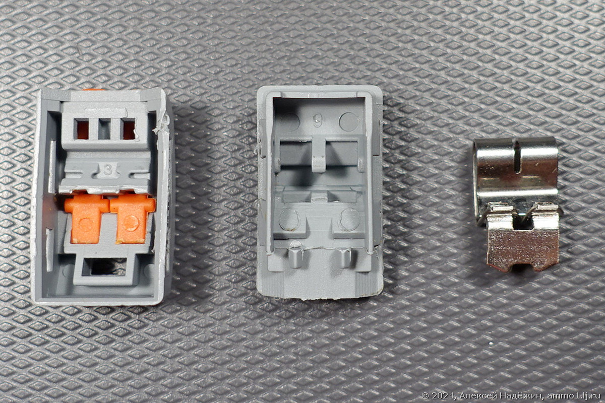 Сопротивление контактов трёхконтактных клемм 0.7-0.8 мОм (0.0007-0.0008 Ом), фактически такое же, как у оригинальных Wago. У двухконтактных клемм сопротивление почему-то больше — 1.5-3 мОм.