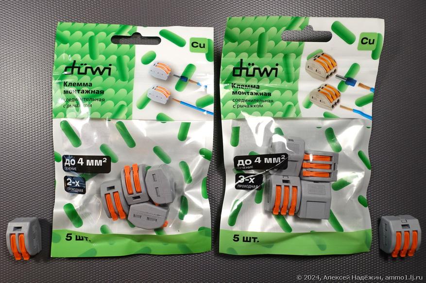 В магазинах «Лемана Про» (бывший Леруа Мерлен) вместо ушедших с нашего рынка Wago продаются точно такие же с виду клеммы duwi. Я протестировал их и сравнил с оригинальными Wago 222.