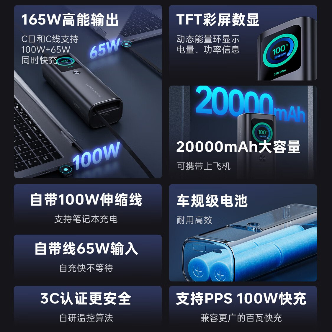 Thunderobot выпустила внешний аккумулятор V20 Pro на 20 000 мАч с мощностью 165 Вт