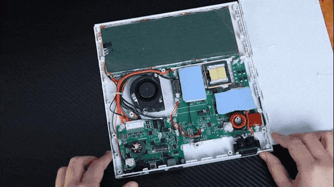 Размеры пластикового (поликарбонат + ABS) корпуса 210х199х16 мм, масса устройства 708 г. Защита от воздействий внешней среды по IPx4. Внутри используется активное охлаждение электронной части инвертора, вентилятор в улитке вращается со скоростью 6000 об/мин.