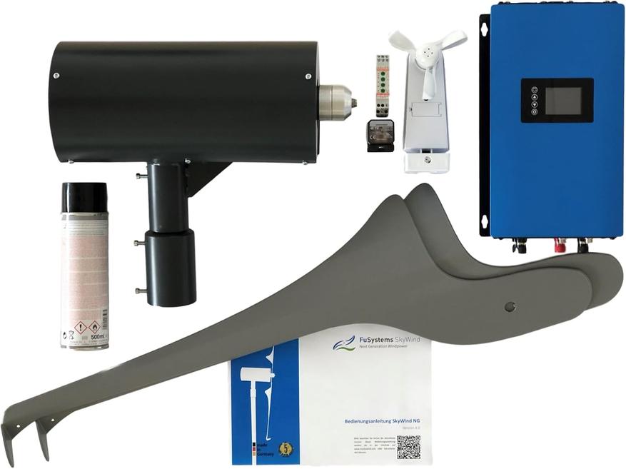 Турбина SkyWind включает в себя нижеперечисленные элементы- турбину, мачту, сетевой инвертор.