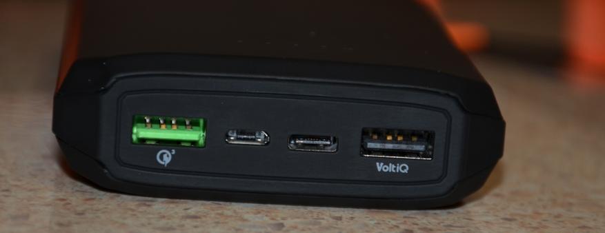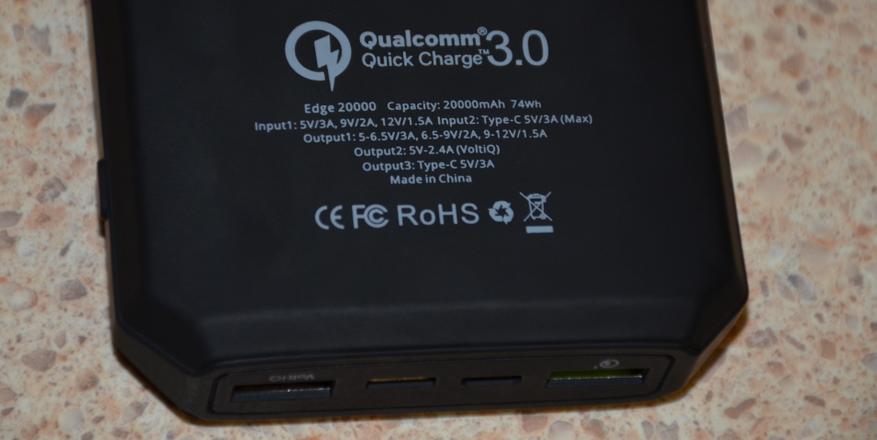 Помимо вполне приличной емкости, отмечу «всеядность» внешнего аккумулятора: это поддержка нескольких стандартов быстрой зарядки сразу. Это и Qualcomm Quick Charge 3.0, VoltiQ и FCP Fast Charging technology.