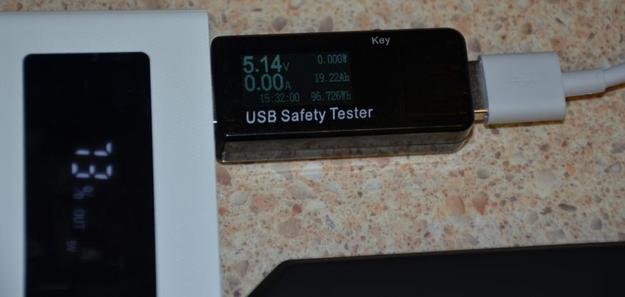 Вообще, если тестировать с двумя выходами (нужно просуммировать показания USB докторов), и с QC, то КПД павербанка становится поменьше, и на получается примерно 13....14 Ач всего.