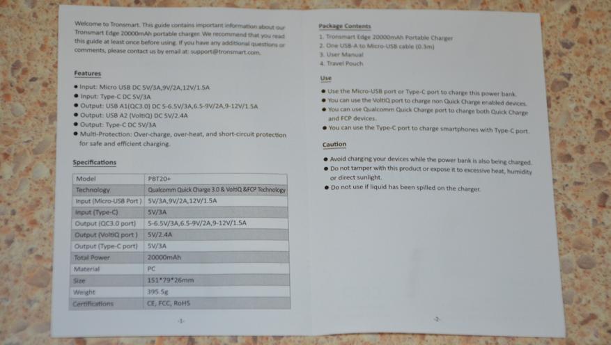 Небольшой обзор-тестирование внешнего аккумулятора Tronsmart Edge 20000