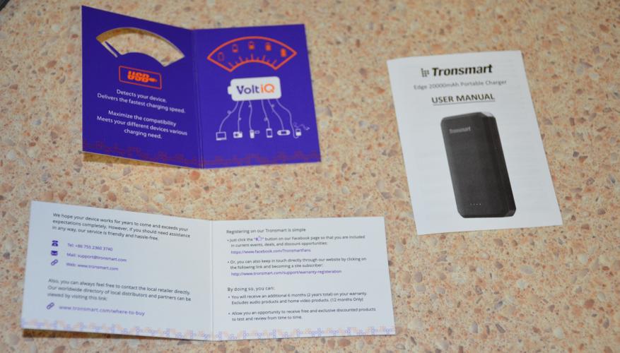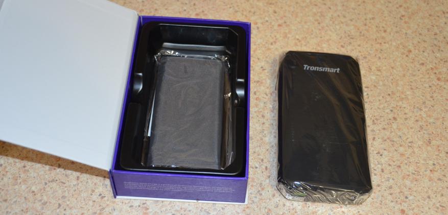 Внешний аккумулятор Tronsmart Edge 20000mAh поставляется в интересной картонной коробочке, запаянной в полиэтилен.