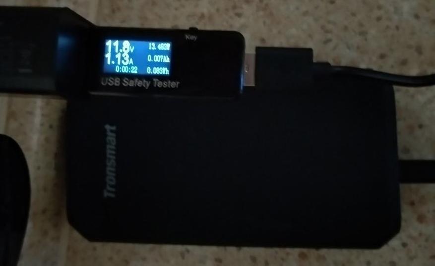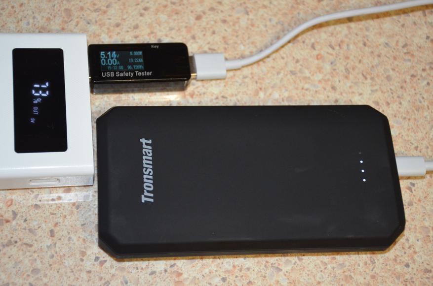 В третьих, проверил полную емкость на заряд разряженного внешнего аккумулятора Tronsmart Edge