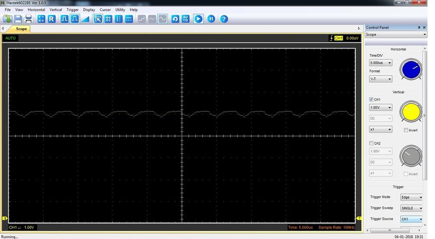 Для сравнения — осциллограммы не очень качественных китайских внешних аккумуляторов под нагрузкой (выставляю ток 2А)