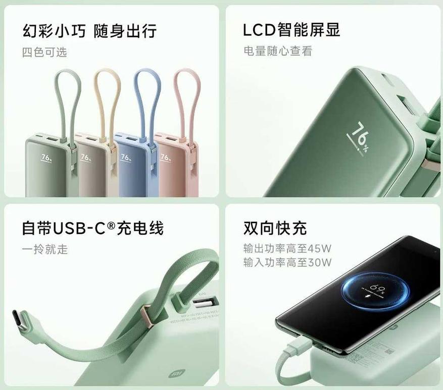 Xiaomi представила новый внешний аккумулятор со встроенным дисплеем и кабелем