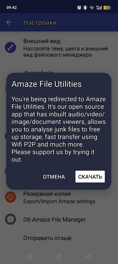 Для подключения к облакам нужно дополнительно установить плагины. Интерфейс минималистичный и удобный. Если вам нужен простой и быстрый менеджер без рекламы и лишних функций, Amaze будет отличным выбором.