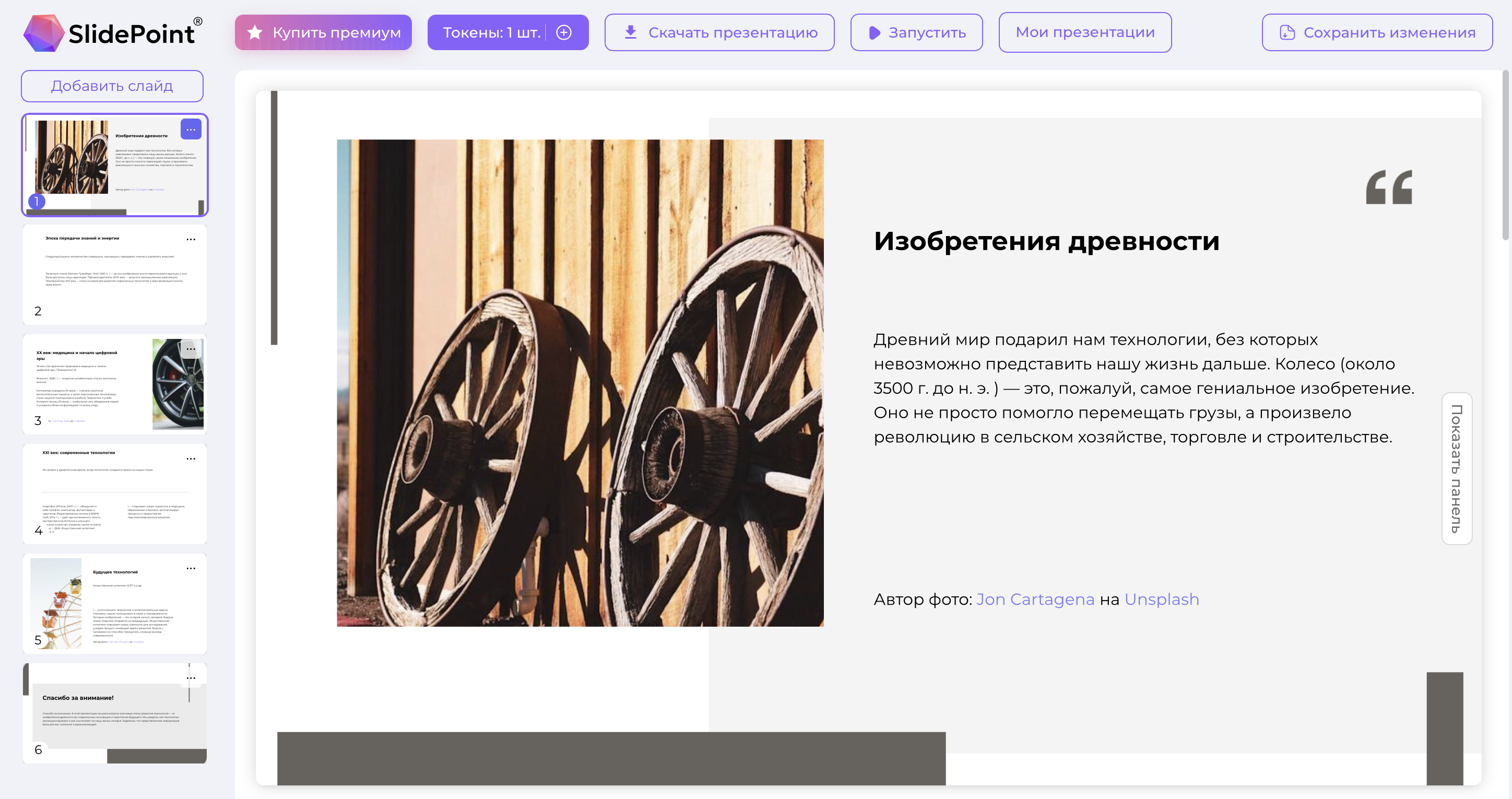 5. SlidePoint — генерация слайдов по тексту и теме