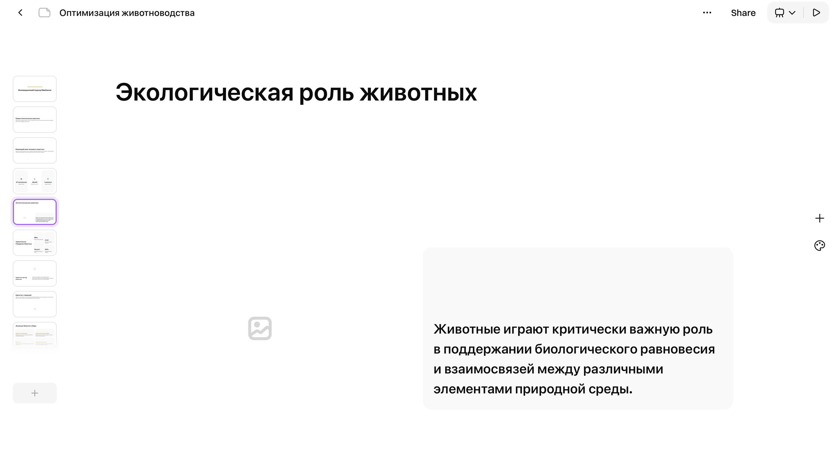 Качество сгенерированного контента прямо пропорционально точности вашего запроса. Избегайте размытых формулировок вроде «сделай презентацию про экологию». Вместо этого укажите:
