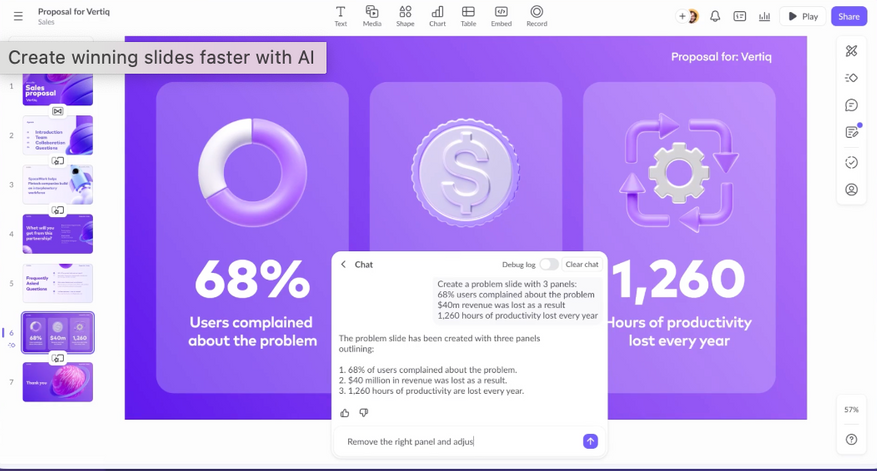 С каждым новым днем информационный поток только усиливается. Люди из разных сфер оказываются в условиях постоянного дефицита времени. Подготовка качественного визуального сопровождения — будь то лекция, вебинар или питч, превращается в трудоемкий процесс: нужно выстроить логику, написать тексты, найти картинки и составить слайды.