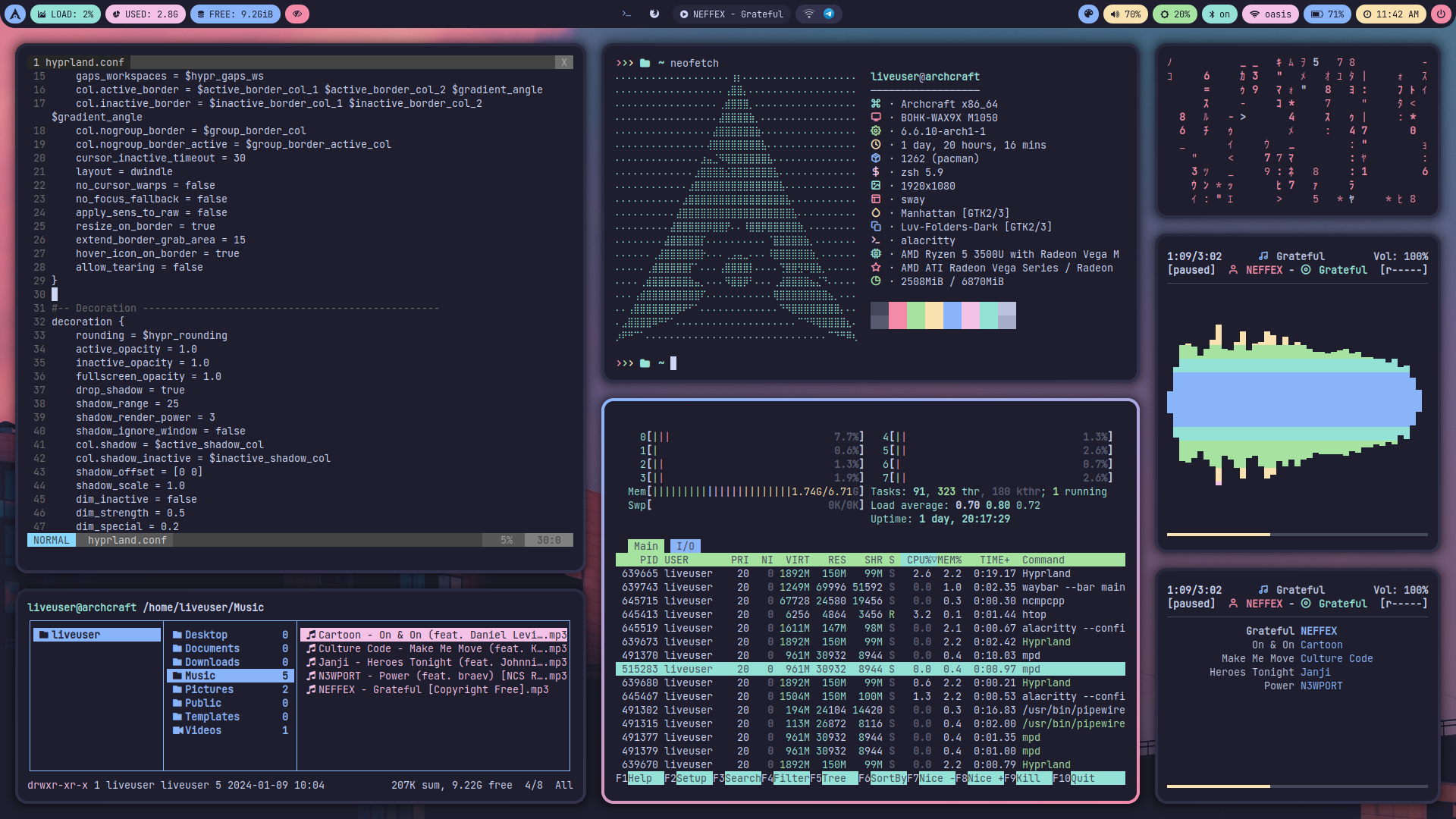 В Linux можно настроить среду рабочего стола почти как угодно. Меняются панели, значки, темы, меню, шрифты, горячие клавиши и даже поведение окон. Это не только про красоту, но и про удобство. Можно сделать минималистичную среду для старого ноутбука, собрать интерфейс под игры или оптимизировать под работу с десятками окон. Многие используют тайлинговые менеджеры, которые автоматически раскладывают окна по экрану и ускоряют переключения. В Windows подобной гибкости меньше: можно сменить тему и поставить пару виджетов, но глубоко изменить логику интерфейса нельзя. В Linux рабочее место превращается в инструмент, который подстраивается под задачи владельца.