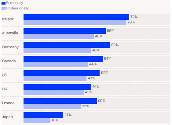 Ирландцы чаще остальных используют ИИ. Японцы сильно отстают
