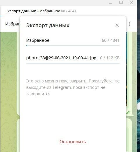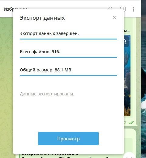 Если в выбранном вами чате или канале нет большого количества «тяжелых» видео, то сохранение происходит за секунды.