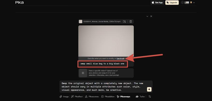 Загружаем видео → выбираем инструмент для редактирования объектов (например, «Replace Object») → выделяем объект, который нужно заменить → вводим текстовое описание нового объекта или загружаем изображение → запускаем процесс генерации. После обработки, скачиваем видео.