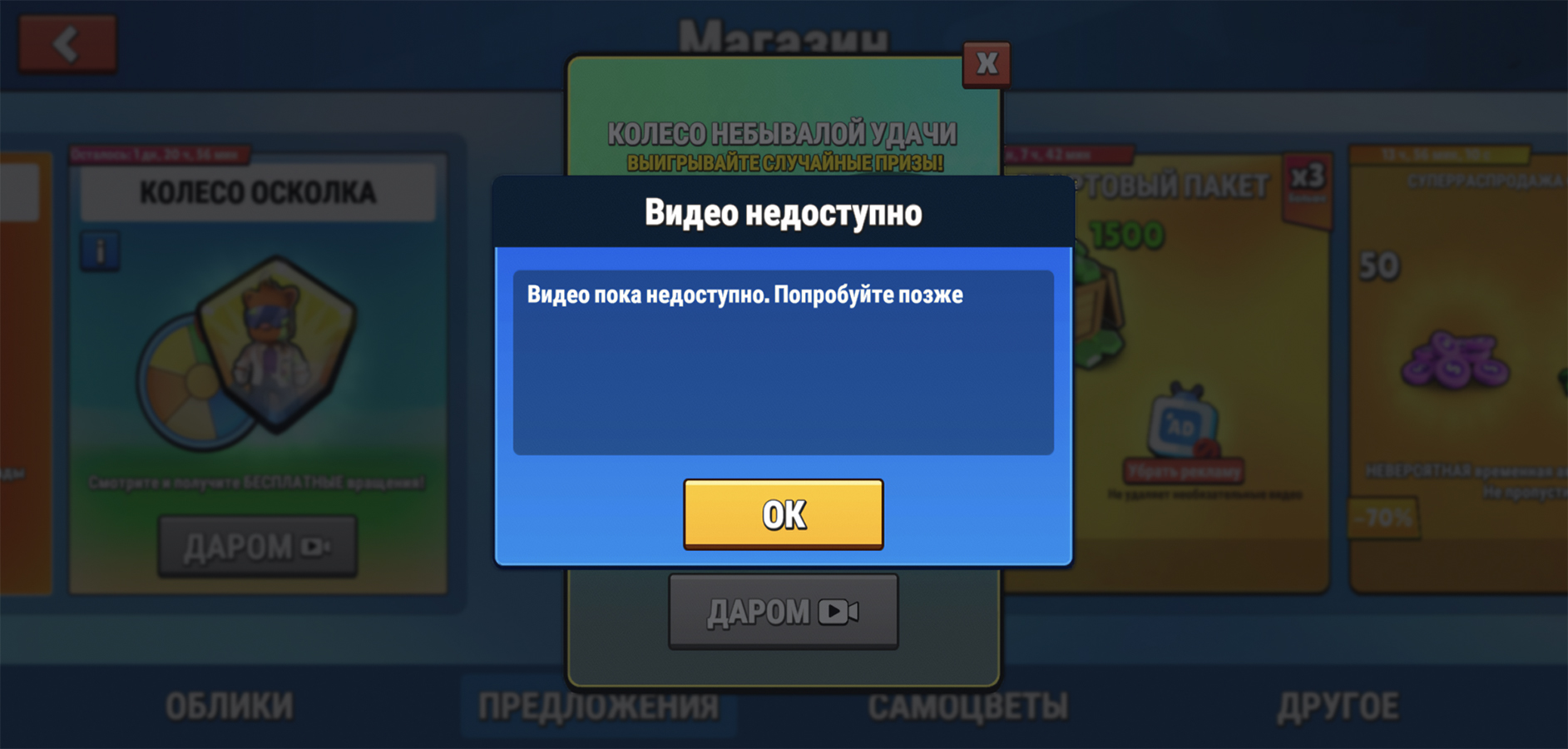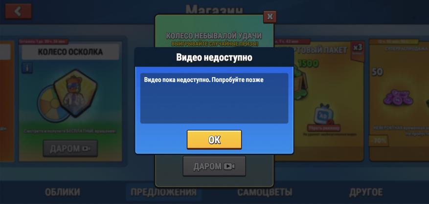В некоторых играх есть возможность добровольно просматривать рекламные блоки (обычно в виде коротких роликов) в обмен на какую-либо награду. После активации АdGuard DNS такой возможности не будет. На скриншоте можете увидеть результат включения АdGuard DNS в игре Stumble Guys — просмотреть видео и поучаствовать в розыгрыше внутриигровых наград не получится. Таким образом, для некоторых игр вам, возможно, придется возвращаться на «дефолтный» DNS-сервер.