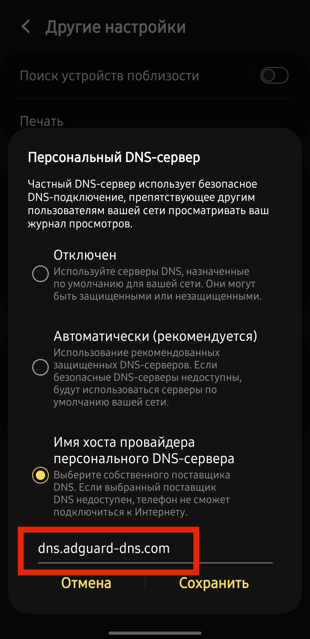 Для использования данного способа закрываем все приложения, в которых хотим избавиться от рекламных блоков. Затем открываем на смартфоне «Настройки» и переходим в «Подключения». Находим пункт «Персональный DNS-сервер». В появившемся окне вписываем имя хоста провайдера — dns.adguard-dns.com и сохраняем настройки. В качестве альтернативы АdGuard DNS можно рассмотреть NextDNS и Alternate DNS.