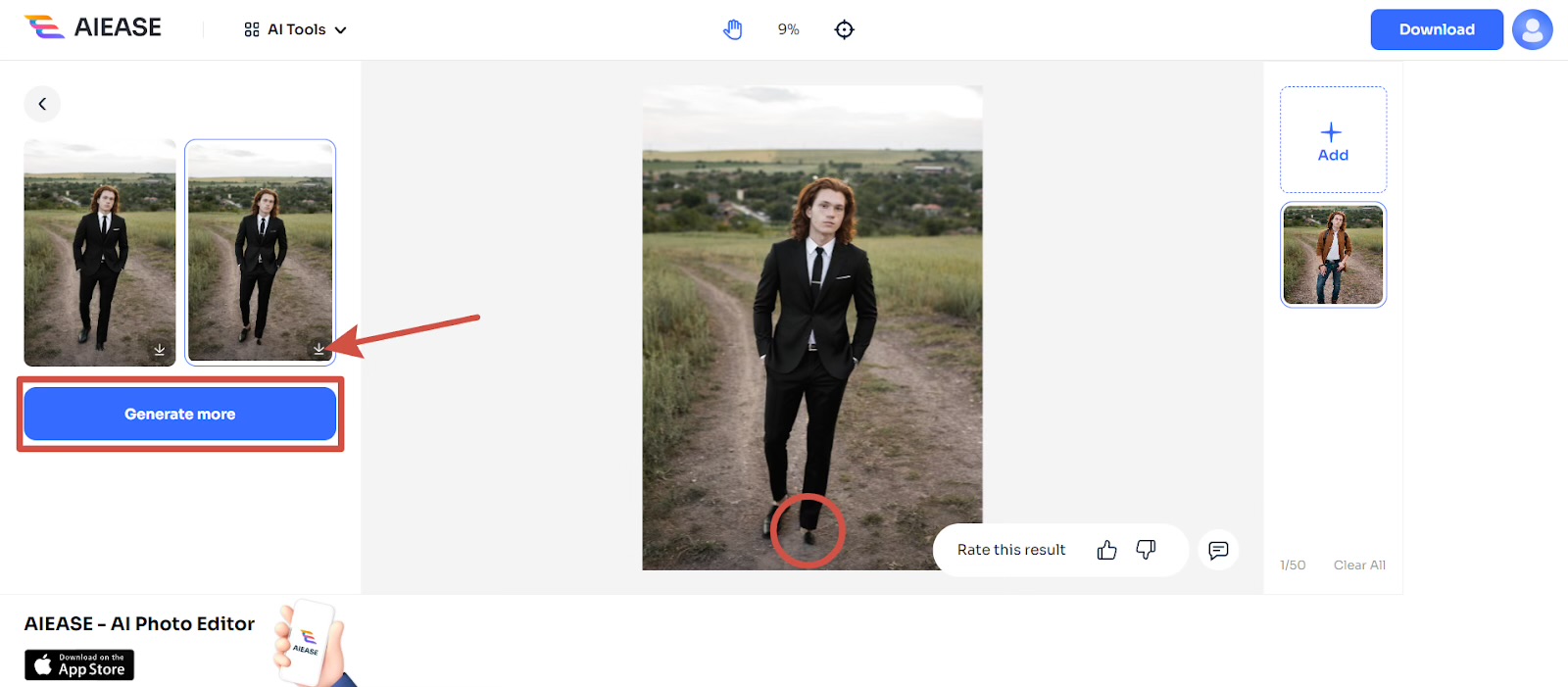 Получаем неплохой результат за примерно 30-40 секунд. Теперь на фото более официальный стиль одежды, в целом картинка выглядит реалистично, телосложение молодого человека сохранено. Можно скачать по кнопке внизу.