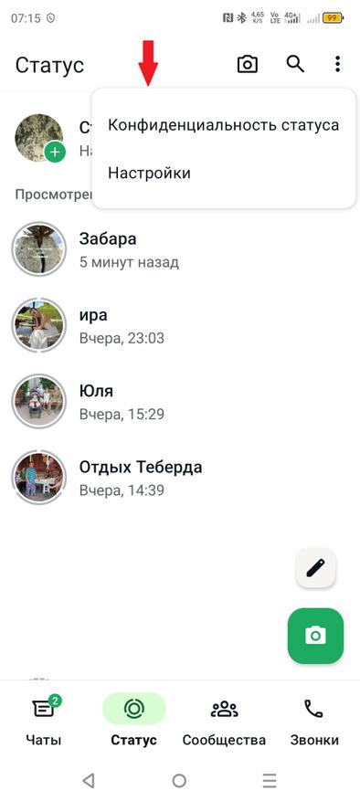 Управление статусом в WhatsApp
