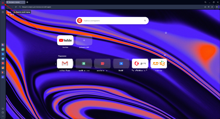- Кликните на значок «O» в левой верхней части экрана либо используйте сочетание клавиш Alt + P, чтобы перейти в меню настроек.