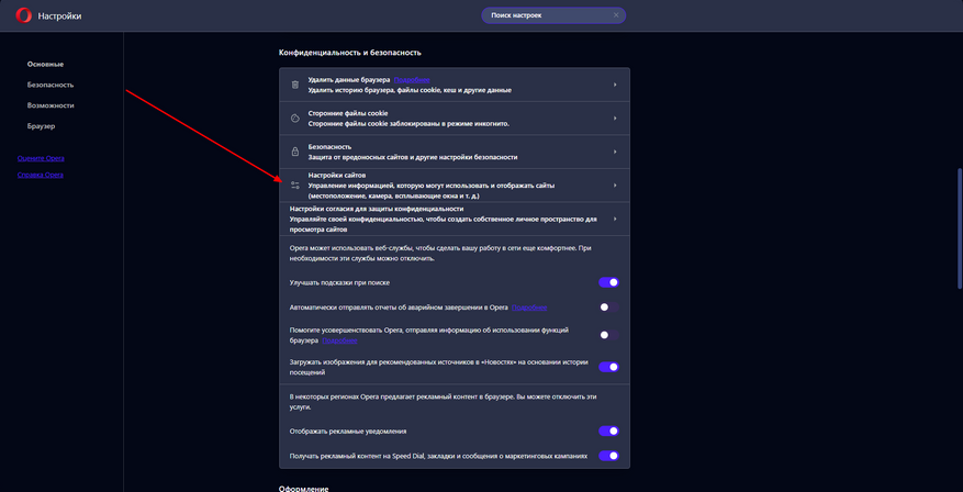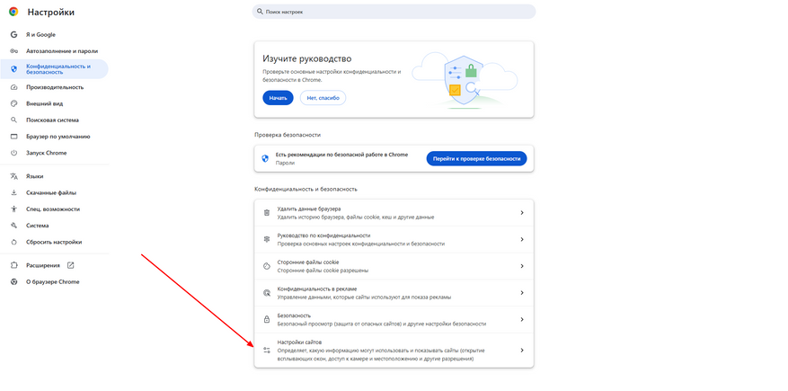 - Нажмите по пункту «Настройки сайтов».
