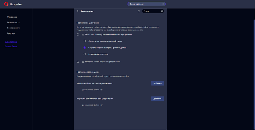 Контроль уведомлений в Opera