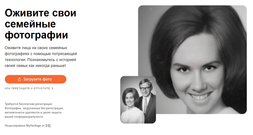 Сервис, созданный именно под оживление фотографий, причем как современных цифровых, так и архивных, которые пылились, дожидаясь звездного часа. Последним можно еще и повысить качество и покрасить.