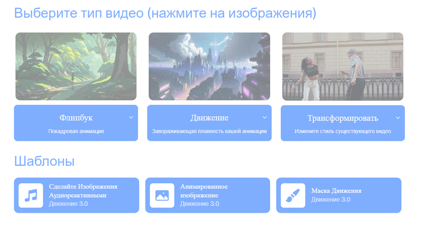 Схожий с Gemini сервис, но с более скромными возможностями. Может создать короткое видео из изображения, но больше заточен под создание анимации, в отличие от Gemini, который работает и с реалистичными изображениями без особых проблем. Также можно добавить в видео один из имеющихся в арсенале видеоэффектов. И отдельная фишка сервиса — его можно использовать через Discord.