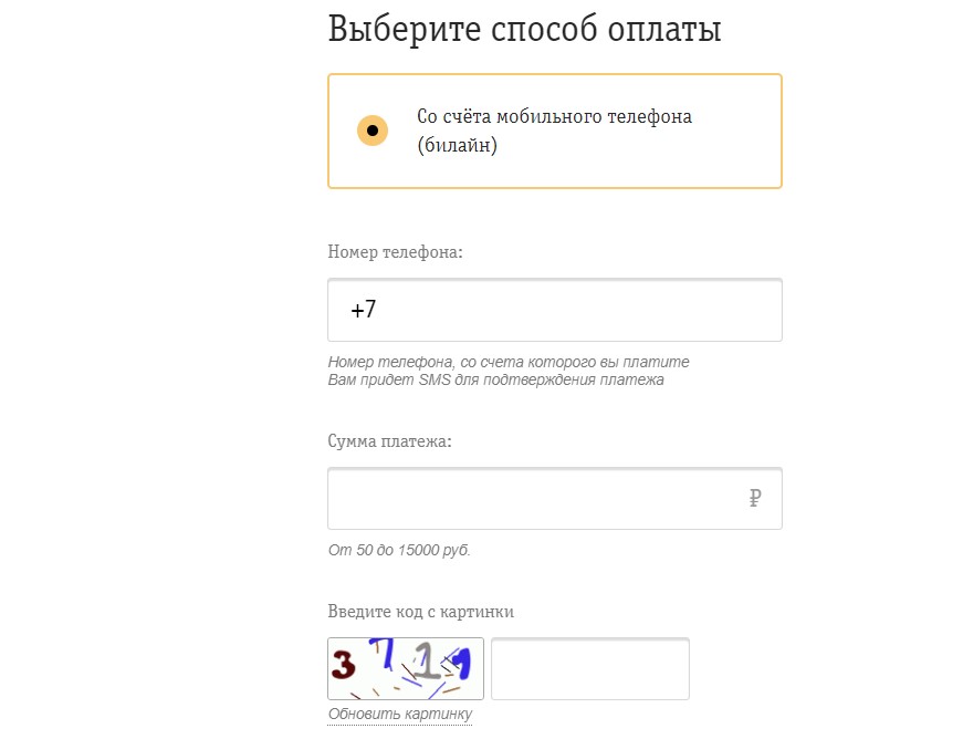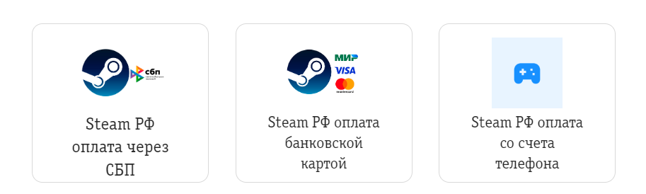 Чтобы пополнить баланс в магазине Steam, вам нужно зайти на официальный сайт «Билайна» и в строке поиска ввести название магазина. Вы увидите три варианта пополнения: через Систему быстрых платежей (СБП), с помощью банковской карты и, что наиболее удобно в нашей ситуации, — с помощью оплаты со счёта телефона.