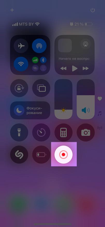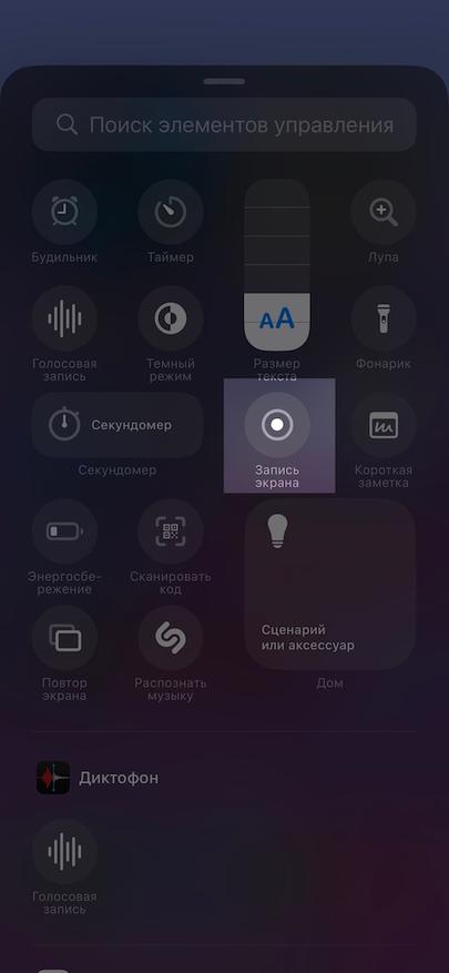 Для быстрого доступа к функции записи экрана добавьте соответствующую кнопку в Пункт управления: