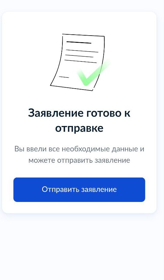 Все! Как вы уже догадались, заявление готово к отправке и вам остаётся только сделать последний шаг 10 и нажать «Отправить заявление». Сделали? Видим свою заявку в верхней части главной страницы приложения.