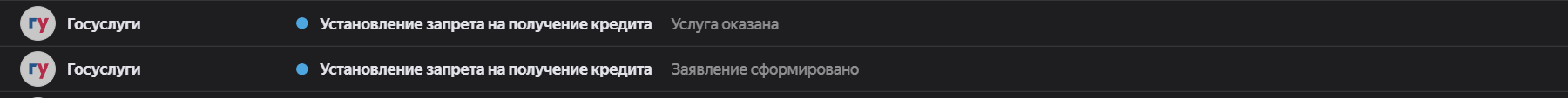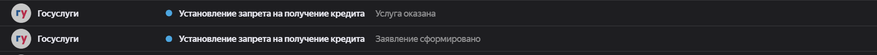 Ну, а дальше проверяем почту — «ГосУслуги» отправят вам письма. Первое о том, что заявление сформировано и второе о том, что услуга оказана. Всё. Дальше ваша заявка улетает в Бюро кредитных историй (БКИ), где вы можете её проверить (лучше это сделать на следующий день, чтобы ваш самозапрет точно подтянулся в во все базы данных)